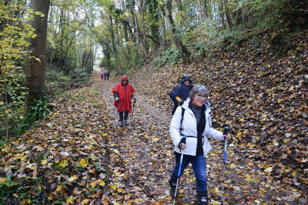 Mené/e/s par Annie et Jocelyne, elles/ils ont parcouru les superbes chemins du Pays d'Auge qui avaient revêtu les ors et les ocres de l'automne. Malgré la pluie matinale, le ciel s'étant dégagé dans l'après-midi, ils ont parcouru plus de 18 km dans la bonne humeur avec de bons gâteaux partagés à midi.