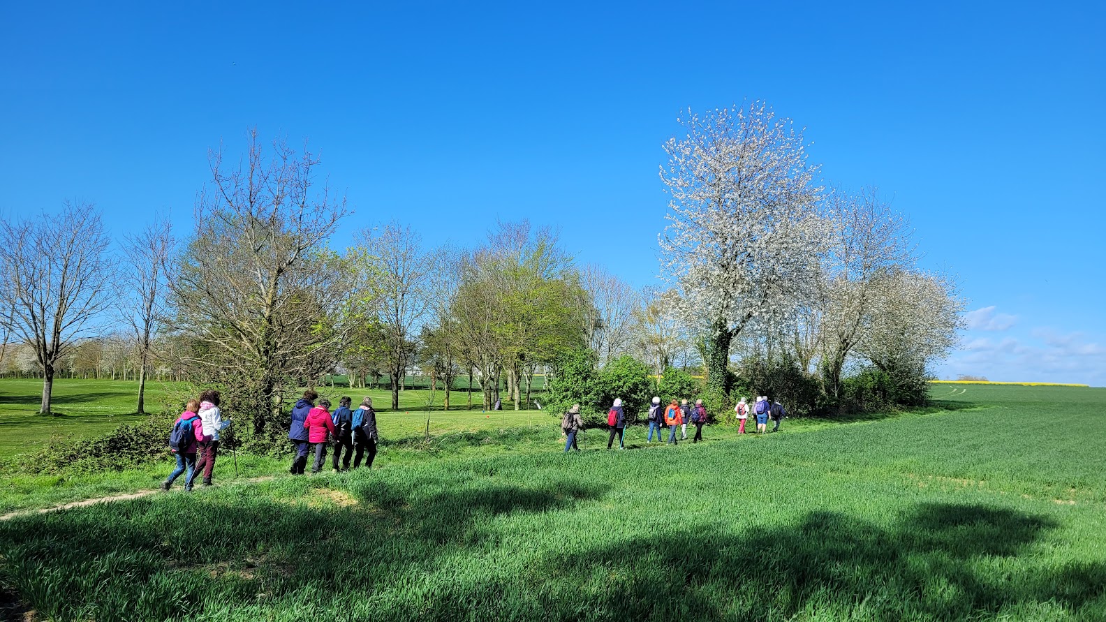 En ce dimanche matin ensoleillé à Hérouville-Saint-Clair, une randonnée pédestre de 9 kilomètres vers Biéville-Beuville, contournant le golf de Caen, était organisée, rassemblant 29 randonneurs et randonneuses sous la direction d'Annick. La première mésaventure arriva lorsque l'une des randonneuses, confrontée à un problème locomoteur, dut quitter le groupe. La seconde mésaventure survint alors qu'une autre randonneuse chuta, ce qui nécessitera des soins, incluant deux points de suture. Ensuite, cinq randonneurs se perdirent, ajoutant une troisième péripétie à l'aventure. Malgré ces incidents, après avoir bravé le péril des swings des golfeurs endiablés, la matinée s’est terminée heureusement. Une bien belle randonnée !